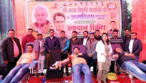 पूर्व प्रधानमंत्री के जन्मदिवस पर भाजपा युवा मोर्चा ने किया रक्तदान शिविर का आयोजन