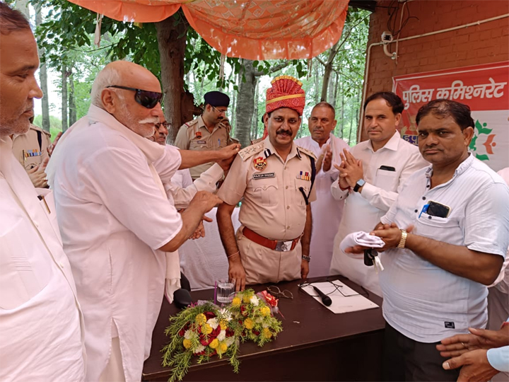 डीसीपी बल्लबगढ़ और एसीपी तिगांव को पगड़ी बांधकर किया सम्मानित, मौजीज व्यक्तियों ने शांति व्यवस्था बनाए रखने का दिया आश्वासन