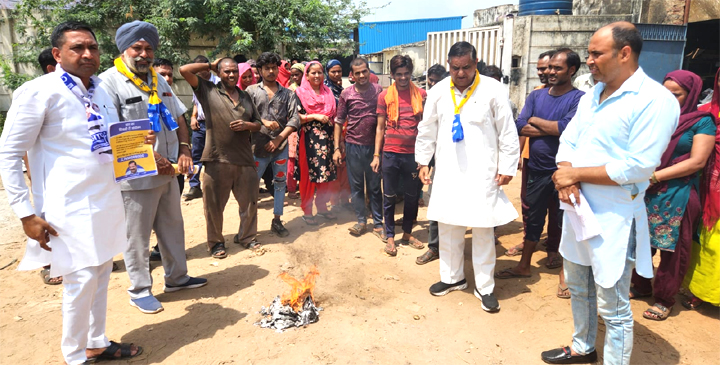 फरीदाबाद, 12 अगस्त । हरियाणा में आम आदमी पार्टी ने बिजली आंदोलन शुरू किया है जिसके तहत पार्टी के नेता कार्यकर्ता घर-घर पहुंचकर बता रहे हैं कि पंजाब और दिल्ली में हमारी सरकार लोगों को फ्री बिजली दे रही है । इसी कड़ी में आम आदमी पार्टी के राष्ट्रीय कार्यकारी के सदस्य धर्मवीर भड़ाना ने फरीदाबाद के खेड़ी कॉलोनी में बिजली आंदोलन के तहत हरियाणा सरकार द्वारा जारी बिजली के बिलों को जलाते हुए कहा कि हरियाणा की भाजपा सरकार प्रदेश के करोड़ों लोगों को बिजली के बिल के नाम पर दोनों हाथों से लूट रही है जबकि दिन-रात बिजली के कई कई कट लग रहे हैं । धर्मवीर भडाना ने कहा कि आप पार्टी ही फ्री बिजली दे सकती है।