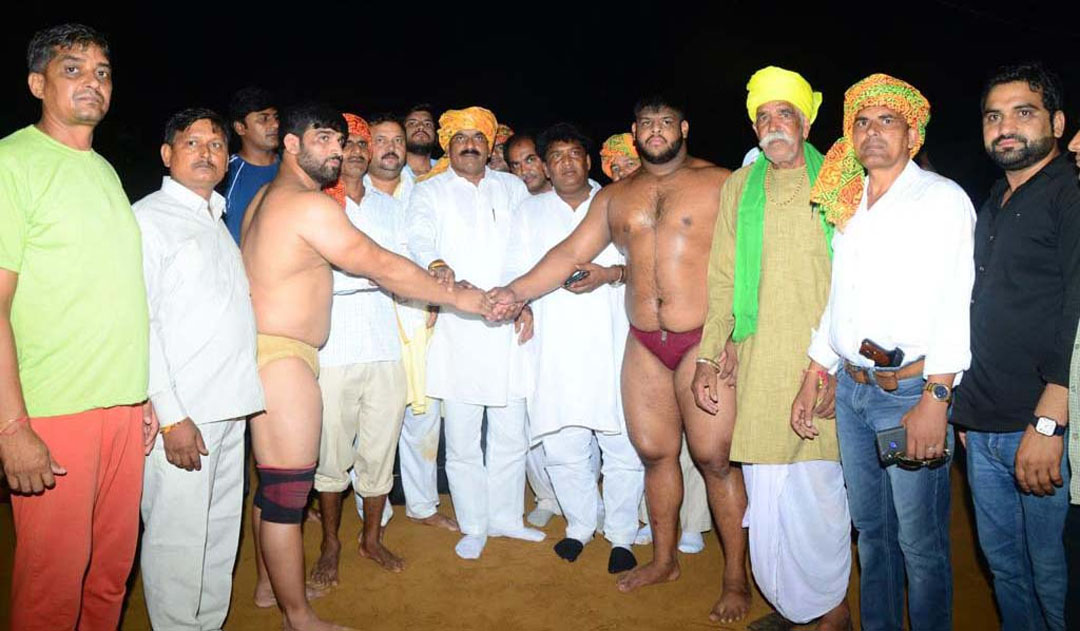 उपस्थितजनों को संबोधित करते हुए सुरेंद्र तेवतिया ने कहा कि खेलों का मनुष्य के जीवन में विशेष स्थान होता है, खेलों से जहां शारीरिक व मानसिक विकास होता है वहीं आपसी भाईचारे की भावना को भी बल मिलता है और कुश्ती खेल ग्रामीण आंचल से जुड़ा खेल है, जिसे लोग आज भी उत्साहित होकर देखते है। उन्होंने कहा कि इस प्रकार की प्रतियोगिताओं से ग्रामीण आंचल में छुपी प्रतिभाओं को आगे आने का मंच मिलता है और वैसे भी आज खेलों में हमारे हरियाणा के खिलाड़ी देश-विदेश में अपनी प्रतिभा का लोहा मनवा रहे है। उन्होंने दंगल प्रतियोगिता आयोजन समिति की प्रशंसा करते हुए कहा कि इस प्रकार की प्रतियोगिताओं के आयोजनों से प्रतिभाशाली खिलाडिय़ों को आगे बढऩे का अवसर मिलता है, इसके लिए प्रतियोगिता के आयोजक प्रशंसा के योगय है। उन्होंने खिलाडिय़ों से आह्वान करते हुए कहा कि वह खेलों को खेल भावना से खेलकर आपसी भाईचारे को बढ़ावा देने का काम करे।