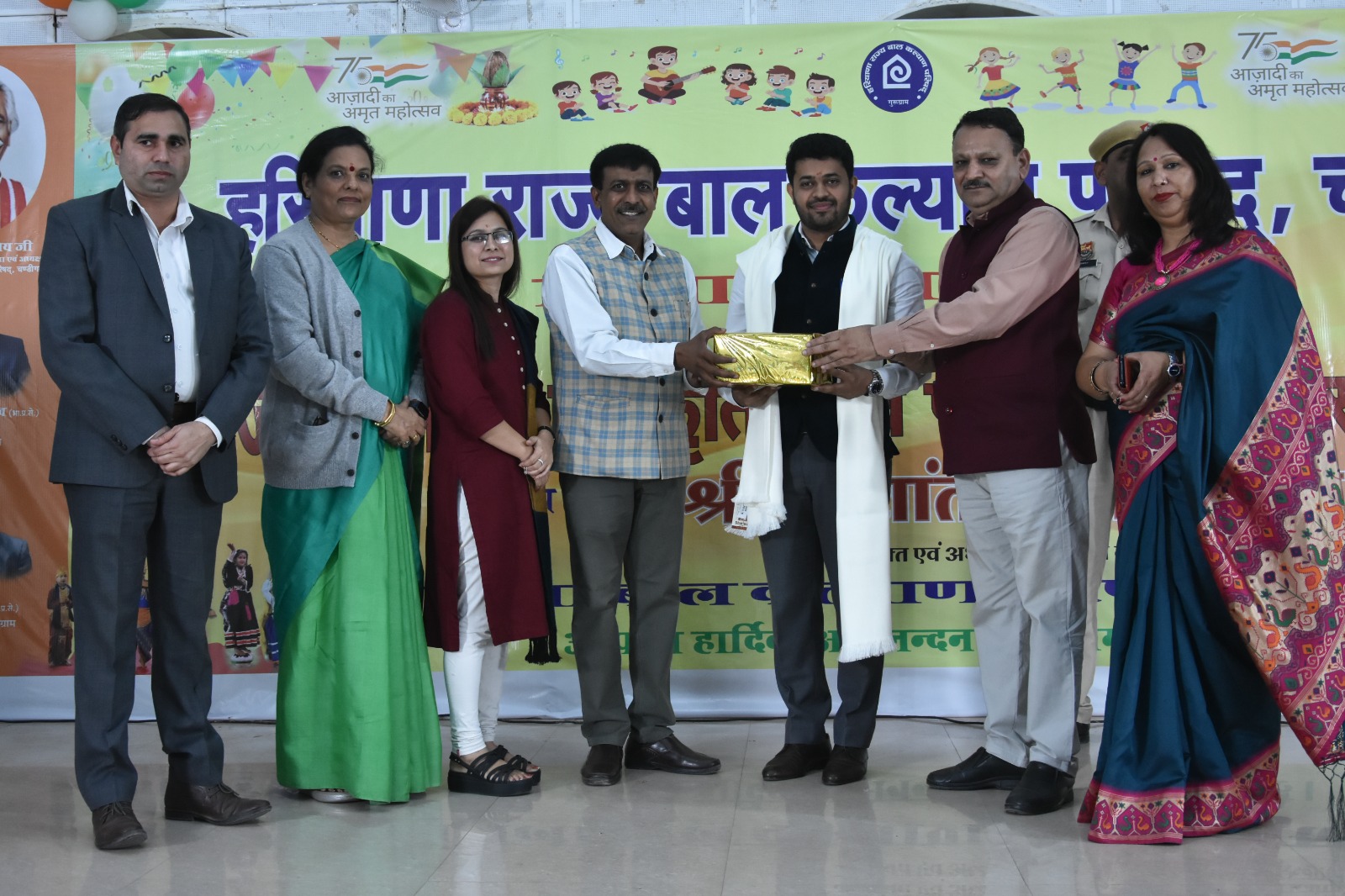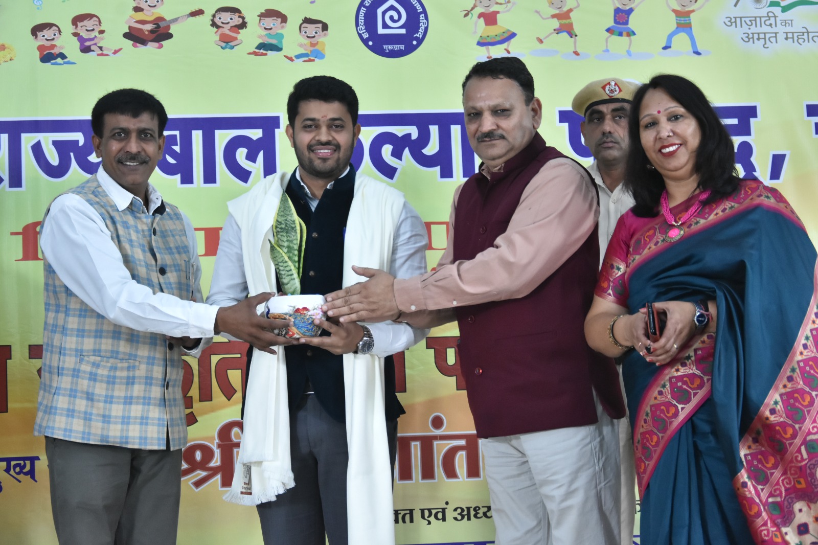 गुरूग्राम, 22 नवंबर। जिलास्तरीय बाल प्रतियोगिताओं का पुरस्कार वितरण समारोह आज स्वतंत्रता सेनानी जिला परिषद सभागार में रंगारंग सांस्कृतिक प्रस्तुतियों के साथ संपन्न हुआ। एडीसी हितेश कुमार मीणा ने विजेता टीमों और निर्णायक मंडल के सदस्यों को प्रशस्ति पत्र व स्मृति चिन्ह भेंटकर सम्मानित किया। इसमें ओवरआल ट्राफी आरपीएस स्कूल को दी गई।