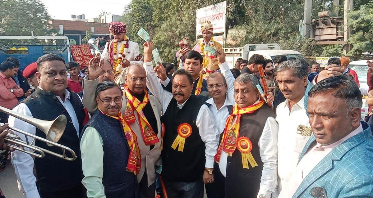 फरीदाबाद, 11 दिसम्बर। महाराजा अग्रसेन विवाह समिति द्वारा 23वां सर्वजातीय 80 जोड़ों का सामूहिक विवाह समारोह का आयोजन किया गया। समारोह में मुख्यातिथि के रूप में राज्यसभा सांसद एवं भाजपा के राष्ट्रीय कोषाध्यक्ष नरेश बंसल, बीएम जिन्दल, बाजार स्थित हनुमान मंदिर के प्रमुख सेवक पं. वैभव शर्मा, महामण्डलेश्वर स्वामी रूपेन्द्र प्रकाश जी महाराज, लखन कुमार सिंगला, अखिल भारतीय ब्राह्मण सभा के राष्ट्रीय अध्यक्ष पं. सुरेन्द्र शर्मा बबली उपस्थित थे।