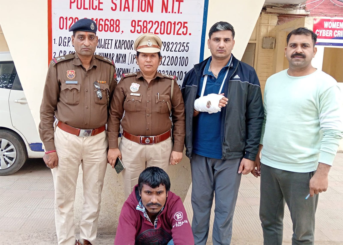 पुलिस टीम के द्वारा आरोपियो को काबू करने के लिए दौडा तो मुख्य सिपाही प्रमोद (एमएचसी) ने आरोपी को काबू किया एक आरोपी को काबू करते समय मोटरसाइकिल से गिर गया और मुख्य सिपाही प्रमोद का हाथ आरोपी के निचे दब गया और हाथ में चोट लग गई जिससे हाथ में फ्रैक्चर हो गया लेकिन आरोपी को काबू कर लिया । आरोपी की तलाशी लेने पर आरोपी के कब्जे से देसी कट्टा व 2 जिंदा रोंद और  20 ATM कार्ड व 300 रुपये बरामद हुए है। आरोपी के खिलाफ थाना एनआईटी में अवैध हथियार रखने का मुकदमा दर्ज कर गिरफ्तार किया गया। पुलिस डिमांड पर लेकर पूछताछ की गई।