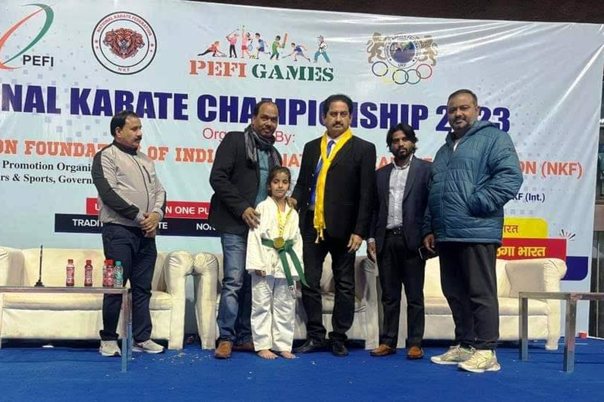 फरीदाबाद, 03 जनवरी। फिजिकल एजुकेशन फाउंडेशन ऑफ इंडिया और राष्ट्रीय कराटे संघ द्वारा तालकटोरा स्टेडियम दिल्ली में आयोजित राष्ट्रीय कराटे चैंपियनशिप 2023 में ग्रेटर फरीदाबाद की ओमक्स स्पा विलेज सोसायटी में रहने वाली 8 वर्षीय आद्विका ने 8.10 वर्ष आयु वर्ग में पारंपरिक कराटे और गैर-संपर्क कराटे प्रतियोगिताओं में दो गोल्ड मेडल जीते।