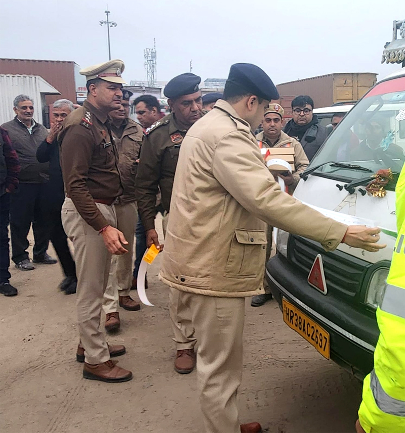 फरीदाबाद, 06 जनवरी। डीसीपी ट्रैफिक अमित यशवर्धन ने ट्रांसपोर्ट नगर में  वाहनों के रिफ्लेक्टर टेप लगाकर उन्हें सड़क सुरक्षा के प्रति जागरूक किया है। पुलिस प्रवक्ता सूबे सिंह ने बताया कि पुलिस उपायुक्त यातायात फरीदाबाद द्वारा ट्रांसपोर्ट नगर सेक्टर 58 में फरीदाबाद ट्रांसपोर्ट एसोसिएशन के सभी सदस्यों को उन्हीं के बीच में जाकर संबोधित किया।