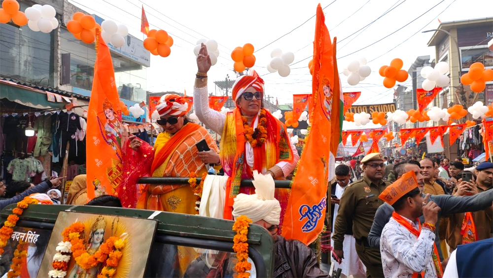 फरीदाबाद, 22 जनवरी। हरियाणा महिला आयोग की चेयरपर्सन रेनू भाटिया ने सैंकड़ों राम भक्तों के साथ आज शोभा यात्रा का आयोजन किया। चेयरपर्सन रेनु भाटिया ने एनआईटी स्थित अपने निजी आवास से शोभा यात्रा का शुभारंभ किया जोकि एनआईटी-1 मैन मार्किट के बीच से निकलकर मिलाप दवाखाना से होते हुए कल्याण सिंह चौक, आर्य समाज रोड से सीधे गवर्नमेंट गर्ल्स सीनियर सेकेंडरी स्कूल, एनआईटी 1 पर समाप्त हुई। इस शोभायात्रा का जगह-जगह पर राम भक्तों, दुकानदारों एवं वालंटियर्स ने गर्मजोशी के साथ स्वागत किया। इस अवसर पर हरियाणा महिला आयोग की चेयरपर्सन रेनू भाटिया द्वारा एनआईटी 1 मैन मार्किट में मिलाप दवाखाना चौक पर भगवान श्री राम जी की 22 फीट ऊंचे स्टैच्यू का अनावरण भी किया गया।