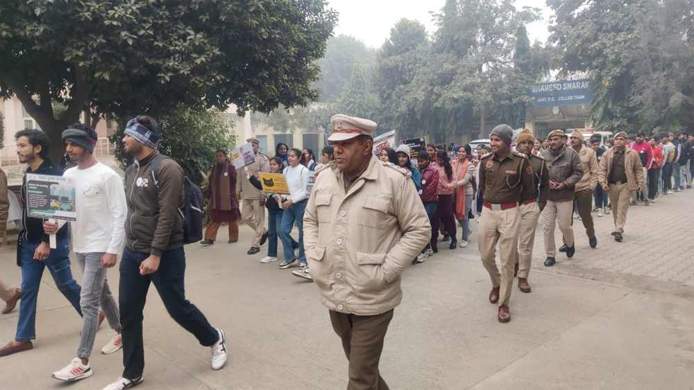 फरीदाबाद, 24 जनवरी। डीसीपी ट्रैफिक अमित यशवर्धन के दिशा निर्देश के तहत ग्रेटर फरीदाबाद के टीआई इंस्पेक्टर सतीश कुमार और थाना तिगांव प्रबंधक जयनाराण ने टीम के साथ आजाद शहीद स्मारक पीजी गवर्नमेंट कॉलेज तिगांव में बच्चो को सड़क सुरक्षा व यातायात नियमों के सम्बन्ध में जागरुक करते हुए जानकारी प्रदान की गई। इस कार्यक्रम में करीब 250 बच्चो के साथ तिगांव कॉलेज से तिगांव चौक तक एक जागरुकता रैली निकाल कर आमजन को यातायात नियमों के संबंध में जागरुक किया है। ट्रैफिक पुलिस फरीदाबाद द्वारा मनाए जा रहे 35वें सड़क सुरक्षा माह का आज दसवां दिन है, जो 15 जनवरी से 14 फरवरी 2024 तक मनाया जा रहा है।