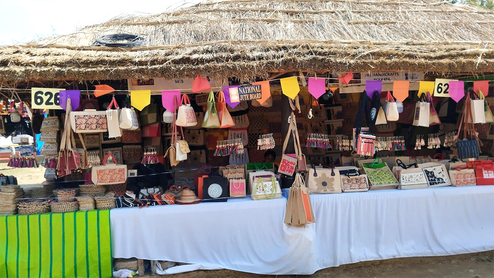 सूरजकुंड मेले की स्टॉल नंबर-624 पर रूपा भंसाली कम्पनी की ओर से आए सुवेन्दु घोष ने बताया कि उनकी कम्पनी द्वारा छोटे-बड़े साईज के हैंड बैग तैयार किए जाते हैं, जिनकी कीमत 100 रुपए से 400 रुपए तक तय की गई है। इन बैग की सीलाई का काम मशीनों द्वारा किया जाता है और इन पर किया गया कढाई का काम हाथ द्वारा किया गया है। मेला ग्राऊंड में यह स्टाल गेट नम्बर एक से छोटी चौपाल की ओर लगाई गई है। इसी प्रकार स्टाल नम्बर-626 पर पाल हस्तशिल्प कोलकता द्वारा तैयार किए गए हैंड बैग की स्टाल लगाई गई है।