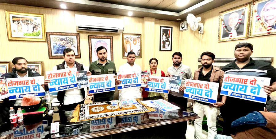 इस मौके पर नितिन सिंगला ने कहा कि हरियाणा बेरोजगारी में पूरे देश में पहले स्थान पर है। बीजेपी जेजेपी सरकार निरंतर प्रदेश के युवाओं के साथ अन्याय कर रही है। सरकार ने सीईटी ग्रुप सी की 32,000 एवं ग्रुप डी की 13,536 भर्तियों को 2021 से लंबित रखा है। नतीजों को एक साथ घोषित न कर धांधली की गई है। तीन साल में केवल एक बार सीईटी लेने से लाखों अभ्यर्थीयों को परीक्षा देने से वंचित रखा गया है । उन्होंने बताया कि सरकारी स्कूलों में टीजीटी और पीजीटी मिलाकर 27, 878 अध्यापकों के पदों को अब तक भरा नहीं गया है। प्रदेश सचिव विकास दायमा ने कहा कि पिछले दस साल से जेबीटी की भर्तियां नहीं हुई हैं।