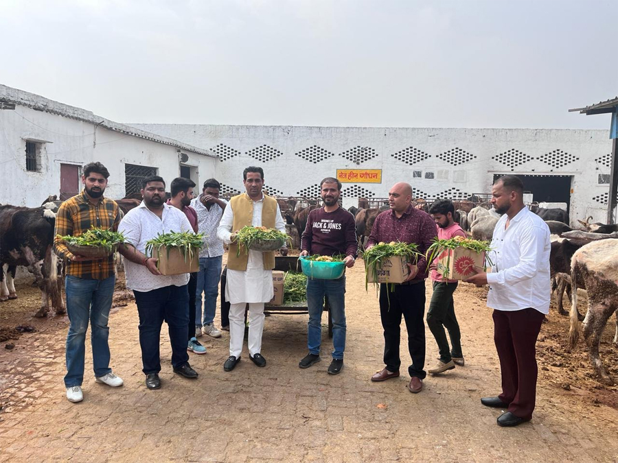 इनसो व जेजेपी ने गऊ माता को गुड़ व चारा खिलाकर मनाया दिगविजय सिंह चौटाला का जन्मदिवस