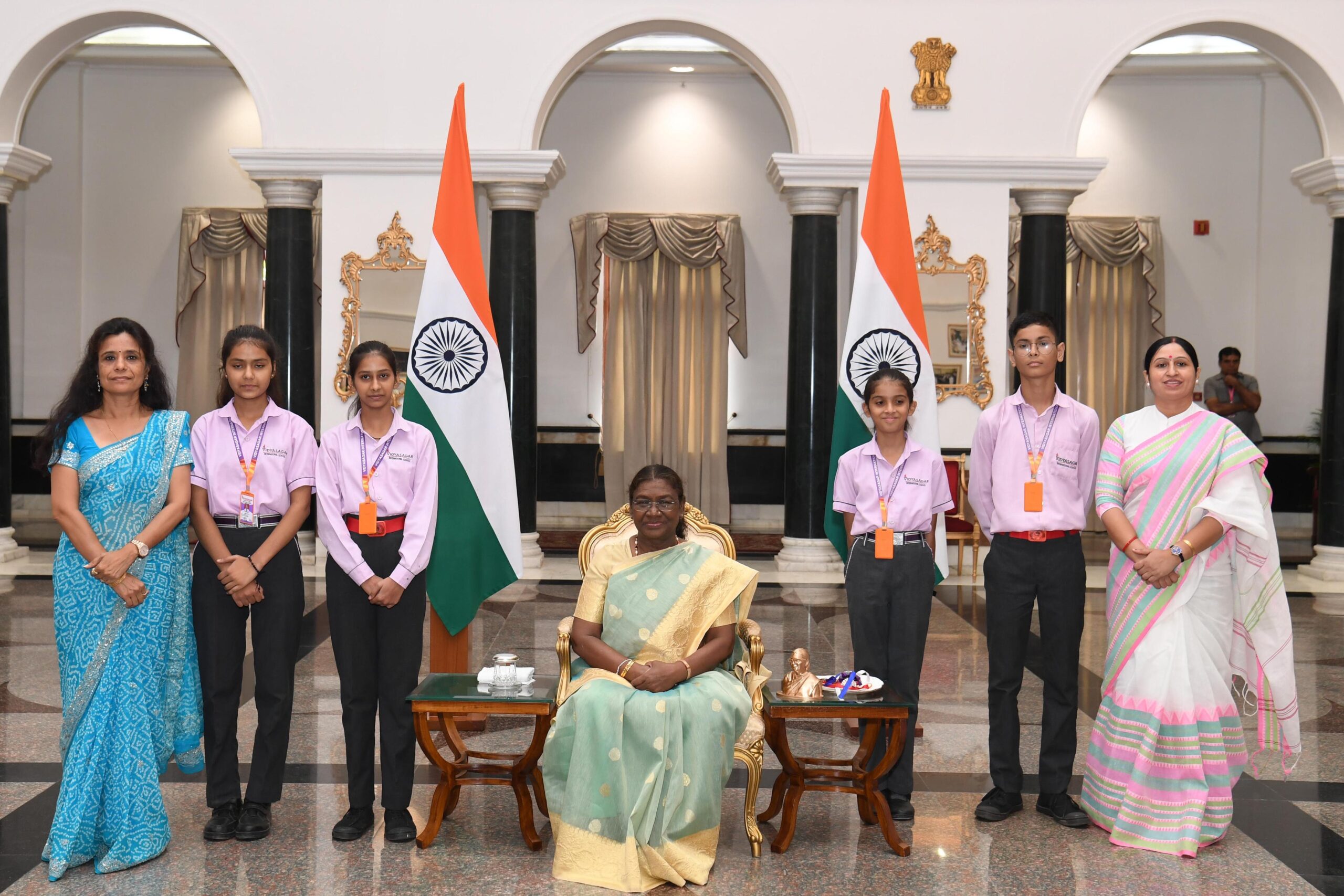 स्कूल निदेशक दीपक यादव ने बताया कि विद्यासागर इंटरनेशनल स्कूल अपने छात्रों के व्यक्तित्व विकास के लिए अनेक कार्यक्रमों का आयोजन करता है। देश के नेतृत्व से मिलना भी इसका एक अंग है। इसी कड़ी में रक्षा बंधन के अवसर पर हमारे स्कूल के छात्रों कक्षा छह से हर्षिता, कक्षा आठ से माही त्यागी एवं आरुष और कक्षा नौ से आरना राष्ट्रपति भवन पहुंचे। उन्होंने अपनी प्रिंसिपल रेखा मलिक और कोर्डिनेटर पूजा शर्मा के साथ महामहिम राष्ट्रपति द्रोपदी मुर्मू से मुलाकात की और उन्हें रक्षा सूत्र बांधा।