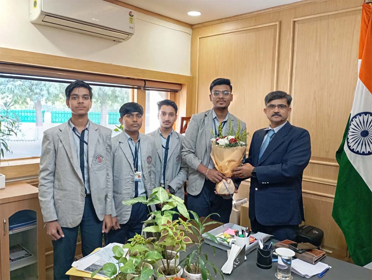 स्कूल के विद्यार्थियों ने आज पुलिस आयुक्त सौरभ सिंह से उनके कार्यालय में भेंट की, जिस पर पुलिस आयुक्त ने विद्यार्थियों को उनकी उपलब्धि पर बधाइ देकर और अधिक कामयाब होने के लिए प्रेरित किया।