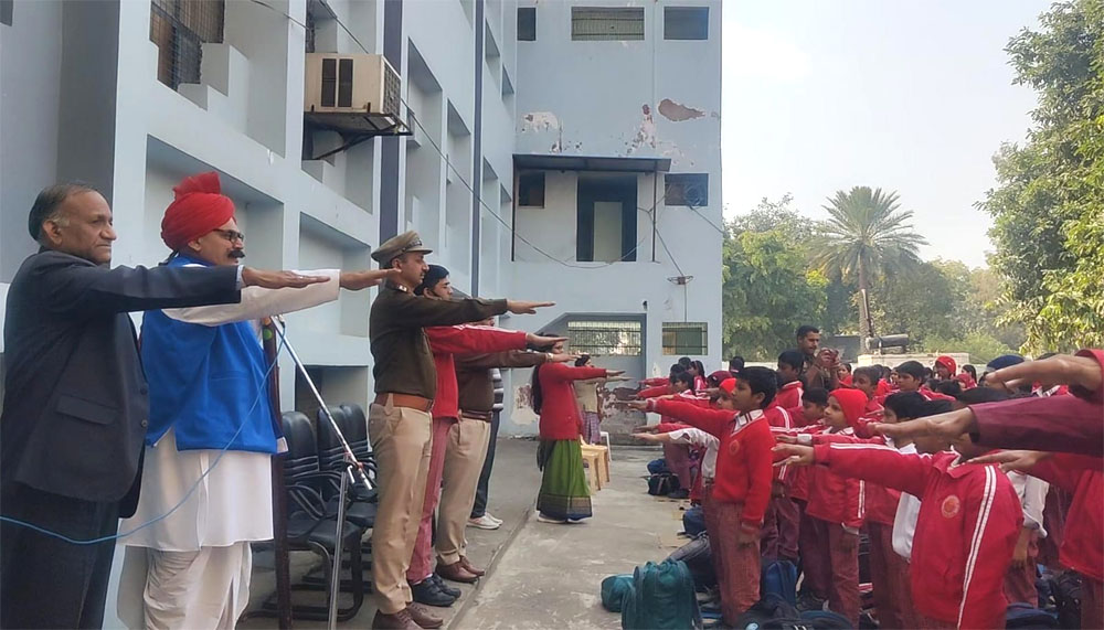 सड़क सुरक्षा के महत्व को समझाते हुए ट्रैफिक ताऊ वीरेंद्र सिंह ने बच्चों को यातायात नियमों का पालन करने और नशा मुक्ति अभियान के प्रति जागरूक रहने का संदेश दिया।