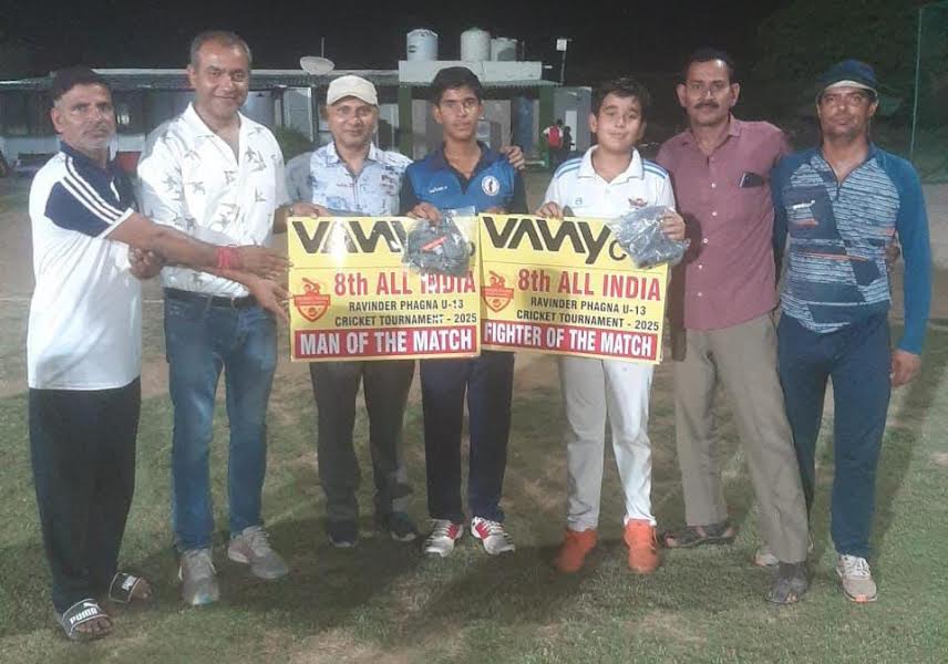 फरीदाबाद। वेनि कप आठवीं ऑल इंडिया रविंदर फागना अंडर-13 क्रिकेट टूर्नामेंट 2025, रविंदर फागना क्रिकेट ग्राउंड भूमि पाली फरीदाबाद पर खेला गया। और यह मैच विटालिटी क्रिकेट अकादमी और स्लेज हैमर क्रिकेट अकादमी बीच खेला गया। इस मैच में स्लेज हैमर क्रिकेट अकादमी ने विटालिटी क्रिकेट अकादमी को 5 विकेट से हराया। यह मैच 40 ओवर का था और स्लेज हैमर क्रिकेट अकादमी ने पहले टॉस जीतकर गेंदबाजी करने का निर्णय लिया। विटालिटी क्रिकेट अकादमी ने पहले बल्लेबाजी करते हुए 34.2 ओवर में 10 विकेट के नुकसान पर 104 रन का लक्ष्य दिया।