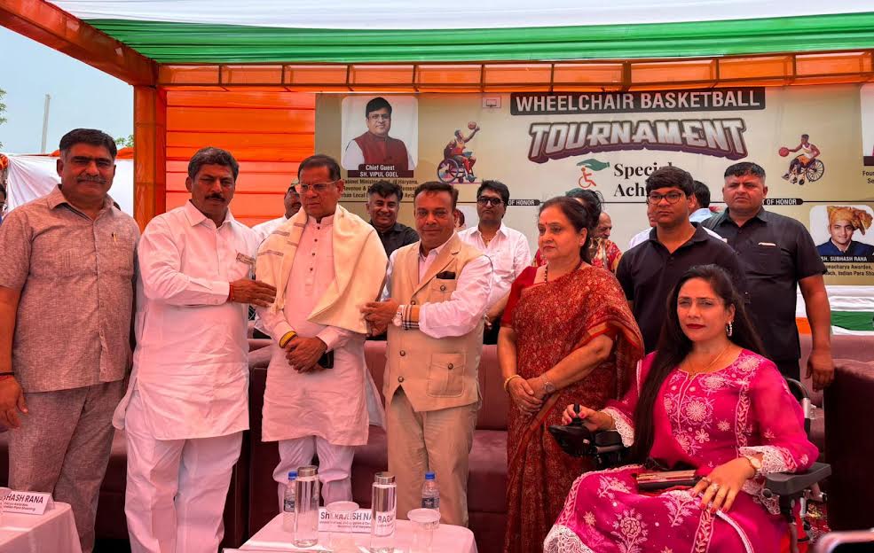 फरीदाबाद। राज्य मंत्री राजेश नागर ने मानव रचना कैम्पस सूरजकुण्ड रोड़ पर दो दिवसीय स्पेशल अचीवर्स व्हील्स चेयर बास्केटबॉल टूर्नामेंट का  समापन  किया इस मौके पर कैबिनेट मंत्री विपुल गोयल के भतीजे अमन गोयल,स्पेशल अचीवर्स चैरिटेबल ट्रस्ट की अध्यक्षा,चेयरपर्सन माधवी हसं, संस्था के ट्रस्टी पंकज हसं और ट्रस्टी टेकचंद नंदराजोग(टोनी पहलवान),महापौर प्रवीण जोशी,, पूर्व जिलाध्यक्ष राजकुमार वोहरा, हॉप ऑन व्हील्स के फ़ाउंडर कविश अग्रवाल मौजूद रहे। राज्य मंत्री ने बॉल को उछालकर मैच की शुरूआत की। मंत्री राजेश नागर ने दिव्यांग खिलाडियों को संबोधित करते हुए कहा कि आप दिव्यांग हैं तो इसका मतलब यह नहीं है कि आप देश को गौरवांवित नहीं कर सकते।