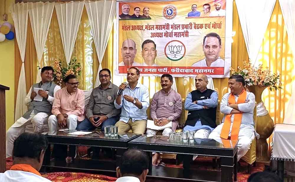 फरीदाबाद। आत्मनिर्भर भारत, हर घर स्वदेशी-घर-घर स्वदेशी अभियान के तहत भाजपा फरीदाबाद महानगर के बल्लभगढ़ मंडल में विशेष बैठक का आयोजन किया गया। बैठक की अध्यक्षता फरीदाबाद महानगर के जिलाध्यक्ष सोहन पाल सिंह ने की, जबकि मुख्य रुप से हरियाणा भाजपा के प्रदेश संगठन मंत्री फणिन्द्रनाथ शर्मा, बल्लभगढ़ के विधायक पंडित मूलचंद शर्मा, विधायक सतीश फागना, महानगर प्रभारी कमल यादव, पूर्व जिलाध्यक्ष गोपाल शर्मा, जिला महामंत्री अनुराग गर्ग जी, कवींद्र चौधरी, जिला मीडिया प्रभारी राजेश कौशिक, संजय जांगड़ा (मंडल अध्यक्ष), मंडल कार्यकारिणी सदस्यगण, शक्ति केंद्र प्रमुखगण एवं वरिष्ठ कार्यकर्ता उपस्थित रहे।