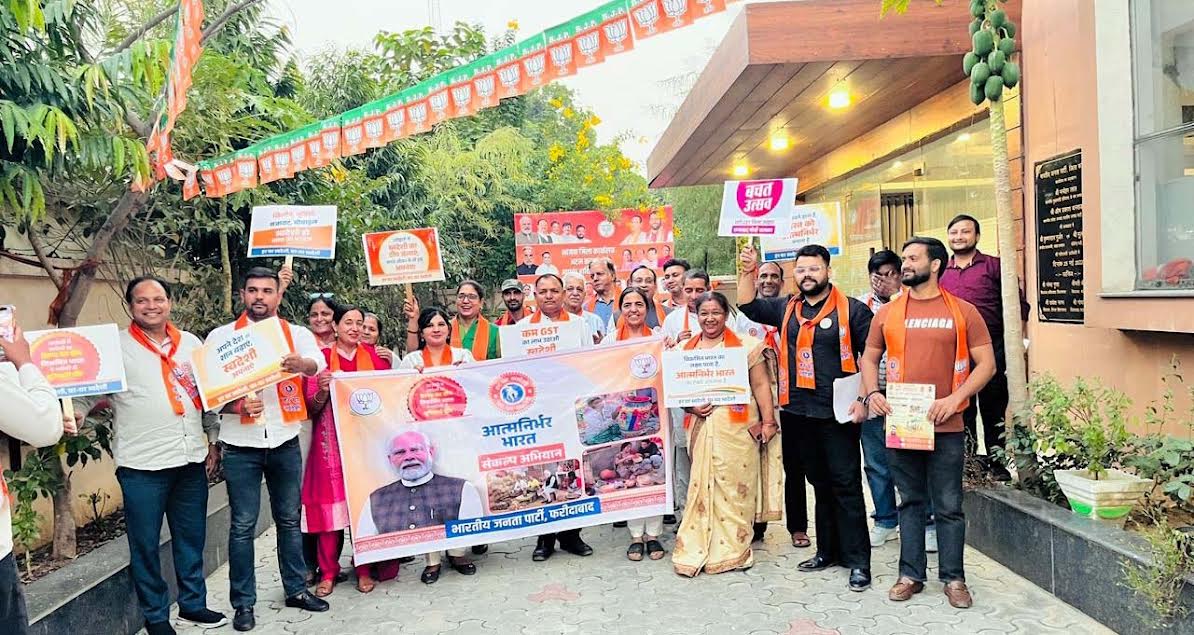 प्रधानमंत्री श्रीनरेंद्र मोदी के ‘वोकल फॉर लोकल’ और ‘आत्मनिर्भर भारत’ के आह्वान को धरातल पर उतारते हुए भारतीय जनता पार्टी फरीदाबाद द्वारा इस कार्यक्रम की जिला संयोजक सीमा भारद्वाज व सह संयोजक गिर्राज त्यागी, तरनजीत सिंह व नीरज मित्तल जी के नेतृत्व में दीपावली से पूर्व फरीदाबाद की सेक्टर-15 मार्किट व उसके आस पास रियाशी इलाके में और सैक्टर 12 पेबल डाउन टाउन माल के पास स्वदेशी वस्तुओं के उपयोग के लिए जन-जागरूकता अभियान चलाया गया। इस अभियान के अंतर्गत भाजपा कार्यकर्ताओं ने घर-घर जाकर नागरिकों को स्वदेशी उत्पादों के उपयोग के लिए प्रेरित किया गया, स्टीकर लगाए व संकल्प पत्रक भरवाए और बाजारों में व्यापारियों से भी अपील की गई कि वे अधिक से अधिक देश में निर्मित उत्पादों की बिक्री करें और स्वदेशी के लिए ग्राहकों को प्रेरित करें। पंकज रामपाल ने आगे कहा कि स्वदेशी जन-जागरूकता अभियान के मुख्य उद्देश्य देश में बने उत्पादों को प्राथमिकता देना है इससे स्थानीय कारीगरों और उत्पादकों को सीधा लाभ मिलेगा । विदेशी वस्तुओं पर निर्भरता कम होगी और देश आर्थिक तौर पर मजबूत होगा।