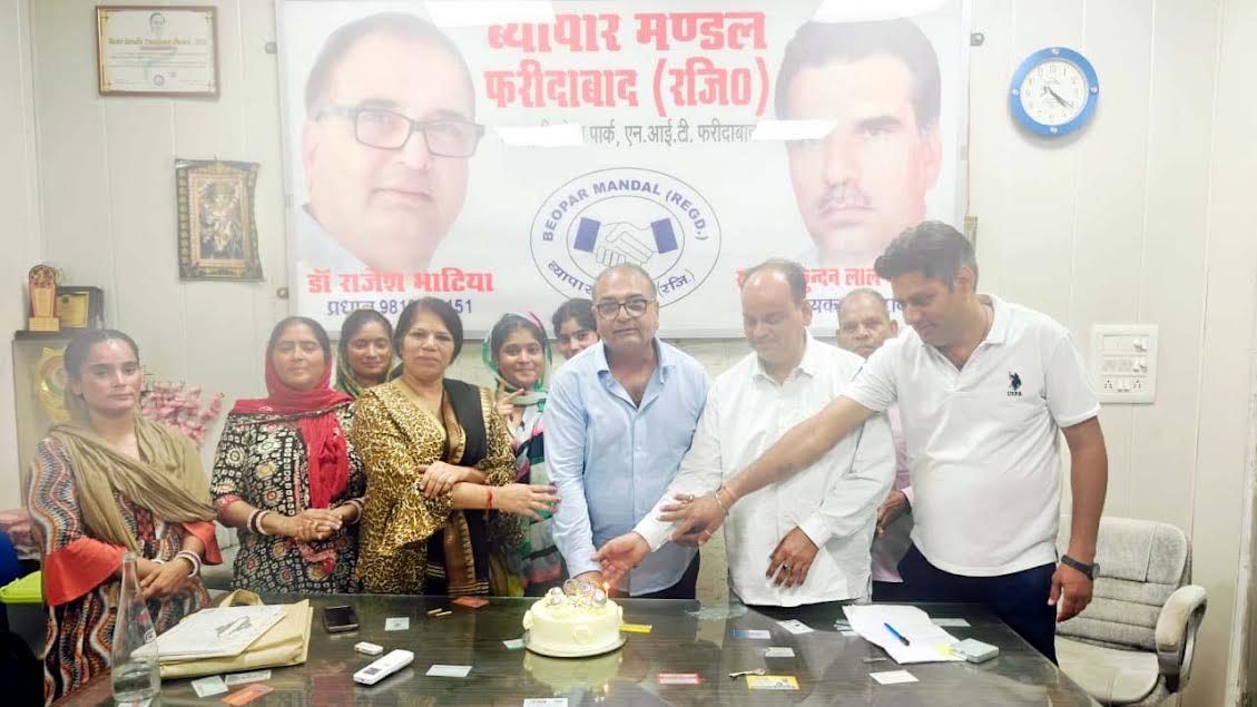 फरीदाबाद। सिद्धपीठ श्री हनुमान मंदिर मार्किट नंबर 1, डा. अनिल मलिक श्री सनातन धर्म महाबीर दल सीनियर सैंकेडरी स्कूल एवं ब्यापार मंडल फरीदाबाद, संस्थाओं ने मिलकर फरीदाबाद जिले का स्थापना दिवस  धूमधाम से मनाया। इस दौरान मंदिर एवं ब्यापार मंडल फरीदाबाद के प्रधान डॉ राजेश भाटिया ने बुजुर्गाे व गणमान्य लोगों के साथ केक काटा और फरीदाबाद शहर की सुख-समृद्धि की कामना की। इस मौके पर डॉ0 अनिल मालिक श्री सनातन धर्म महाबीर दल सीनियर सेकेंडरी स्कूल के प्रधान डॉ राजेश भाटिया ने उपस्थितजनों को संबोधित करते हुए कहा कि 1947 में हमारा देश आजाद हुआ था और 17 अक्टूबर, 1949 को हमारे बुजुर्गाे ने न्यू इंडस्ट्रियल टाऊन की नींव रखी थी।
