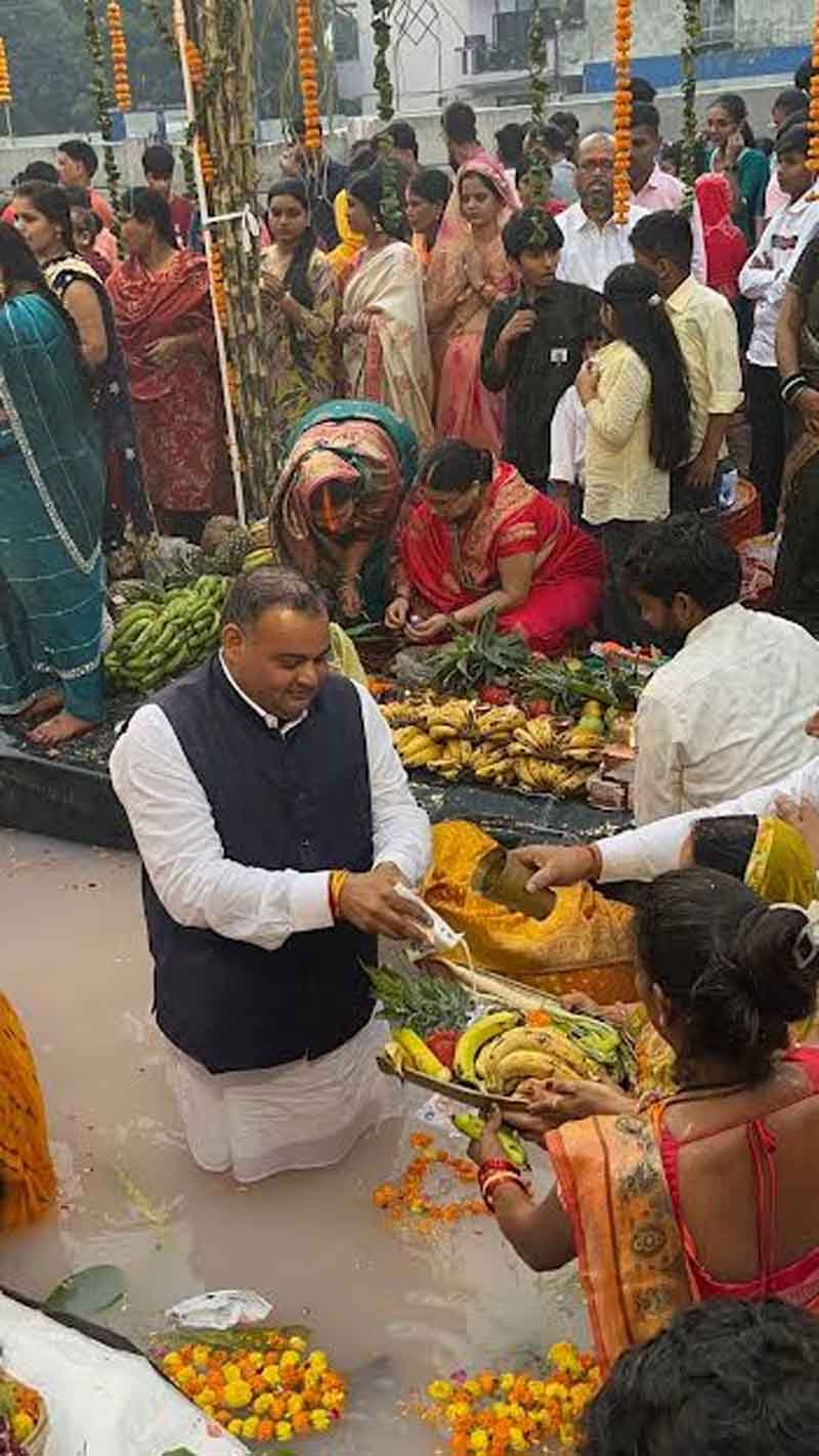 फरीदाबाद । बड़खल विधानसभा के वार्ड 22 और 23 में पूर्व पार्षद श्री जितेन्द्र भड़ाना (जीते भाई) ने दयाल बाग और शिव दुर्गा विहार क्षेत्र में पूर्वांचल समाज के भाई-बहनों के लिए छठ पूजा हेतु विशाल घाट का निर्माण कराया। इस पावन अवसर पर क्षेत्र के हज़ारों श्रद्धालु माताएँ–बहनें एकत्र हुईं और पूरे विधि-विधान के साथ पूजा-अर्चना की। सभी ने जीते भाई के इस निरंतर सेवा भाव की सराहना करते हुए कहा कि वे पिछले कई वर्षों से छठ पूजा के इस आयोजन और घाट निर्माण कार्य से जुड़े हैं।