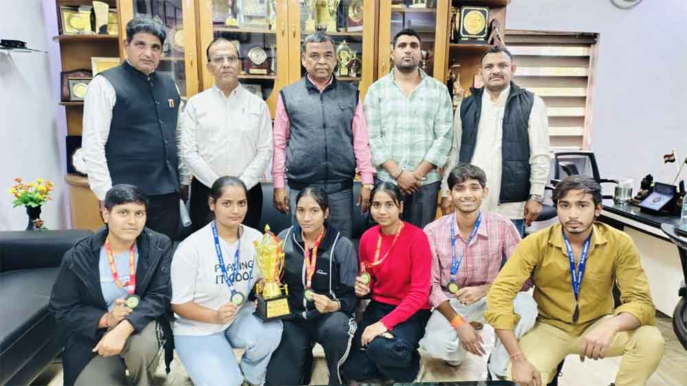 महाविद्यालय में आयोजित सम्मान समारोह में कार्यवाहक प्राचार्य डॉ. जयपाल सिंह ने विजेताओं को मेडल पहनाकर बधाई दी।