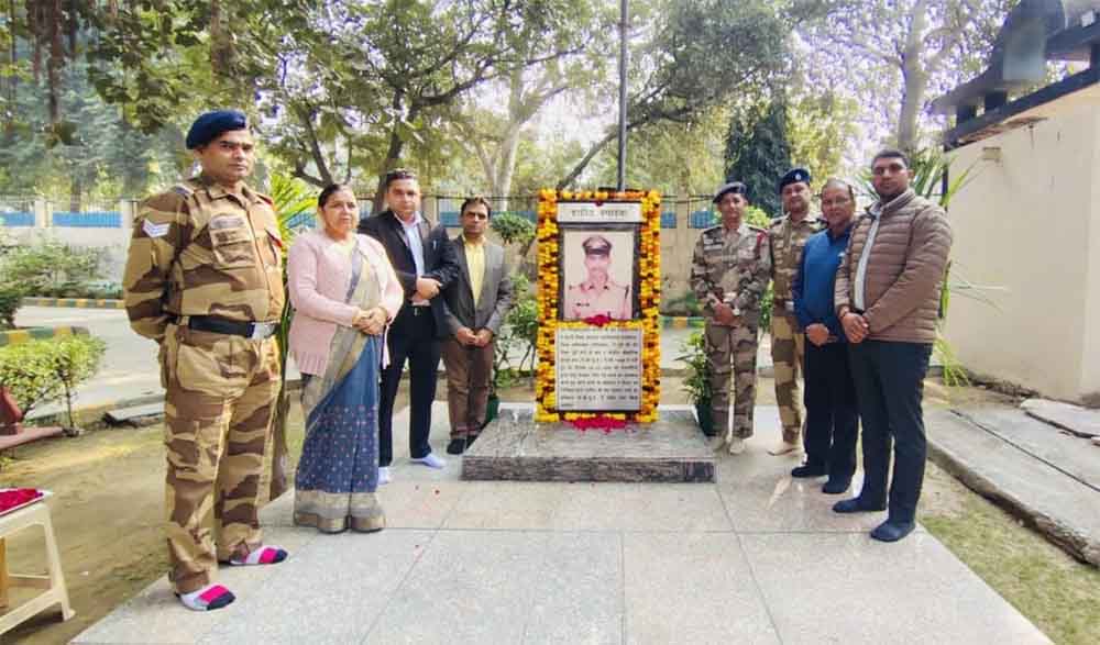 बल्लभगढ़ । अग्रवाल महाविद्यालय में 2 दिसंबर 2025 को प्रतिवर्ष की भांति शहीद श्री जय भगवान शर्मा की पुण्यतिथि के अवसर पर शहीद की धर्मपत्नी कमलेश शर्मा, सुपुत्र नरेश कौशिक एवं  परिवार के साथ कार्यवाहक प्राचार्य डॉo संजीव कुमार गुप्ता ने महाविद्यालय में स्थापित ‘शहीद स्मारक’ पर पुष्प भेंट कर उनको भावभीनी श्रद्धांजलि अर्पित की एवं केंद्रीय औद्योगिक सुरक्षा बल के नीरज उनियाल एवं अन्य गणमान्य जन भी उपस्थित थे।