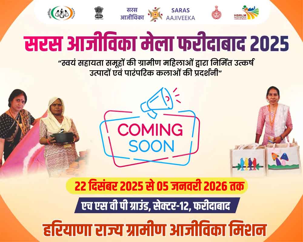 फरीदाबाद । जिला परिषद फरीदाबाद की मुख्य कार्यकारी अधिकारी शिखा ने जानकारी देते हुए कहा कि हरियाणा सरकार के हरियाणा राज्य ग्रामीण आजीविका मिशन (HSRLM) ग्रामीण विकास विभाग द्वारा फरीदाबाद में सरस आजीविका मेला–2025 का आयोजन आगामी 22 दिसंबर से 05 जनवरी 2026 तक एचएसवीपी ग्राउंड, सेक्टर–12 फरीदाबाद में किया जाएगा। यह मेला प्रतिवर्ष ग्रामीण महिलाओं को आत्मनिर्भर बनाने तथा स्वंय सहायता समूहों (Self Help Groups) द्वारा तैयार किए गए हस्तनिर्मित उत्पादों को एक सशक्त बाजार उपलब्ध कराने के उद्देश्य से आयोजित किया जाता है।