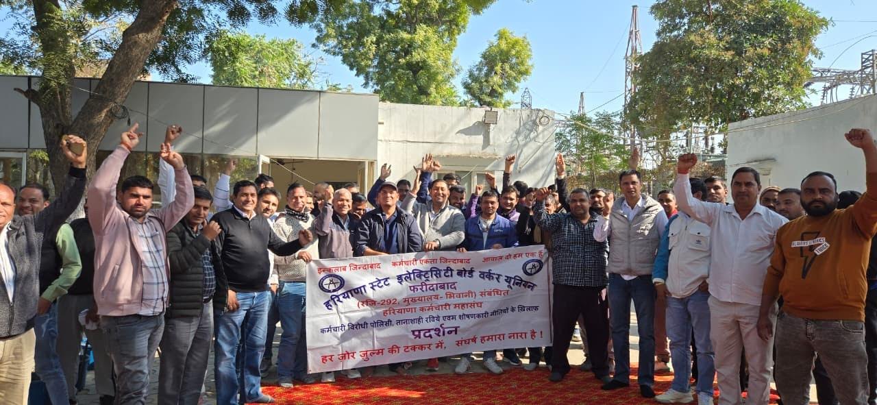 हरियाणा विद्युत निगम में ऑनलाइन ट्रांसफर पॉलिसी के विरोध में कर्मचारियों का जोरदार प्रदर्शन