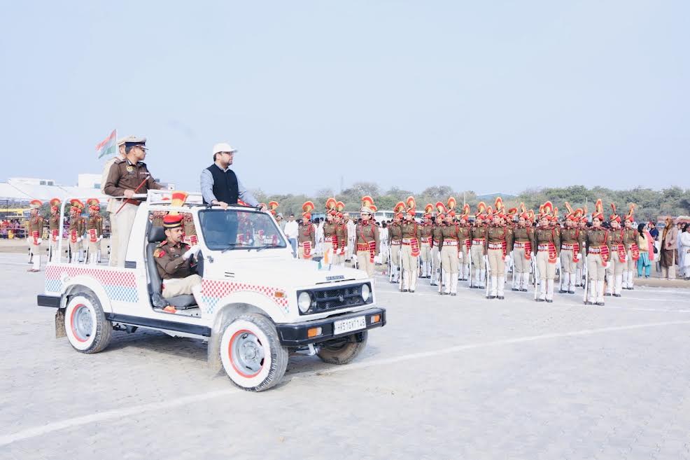 डीसी आयुष सिन्हा ने जिला स्तरीय समारोह के फाइनल रिहर्सल के दौरान सुबह 9:58 पर ध्वज फहराया। इसके पश्चात डीसी आयुष सिन्हा और पुलिस उपायुक्त सतेंद्र कुमार गुप्ता के साथ खुली जीप में सवार होकर परेड का निरीक्षण किया। परेड कमाण्डर के नेतृत्व में हरियाणा पुलिस टुकड़ी (पुरुष), हरियाणा पुलिस टुकड़ी (महिला), हरियाणा होमगार्ड टुकड़ी, एनसीसी सीनियर की टुकड़ी, भारतीय स्काउट की टुकड़ी और प्रजातंत्र के प्रहरी की टुकड़ी द्वारा मार्च पास्ट में भाग लिया गया।
