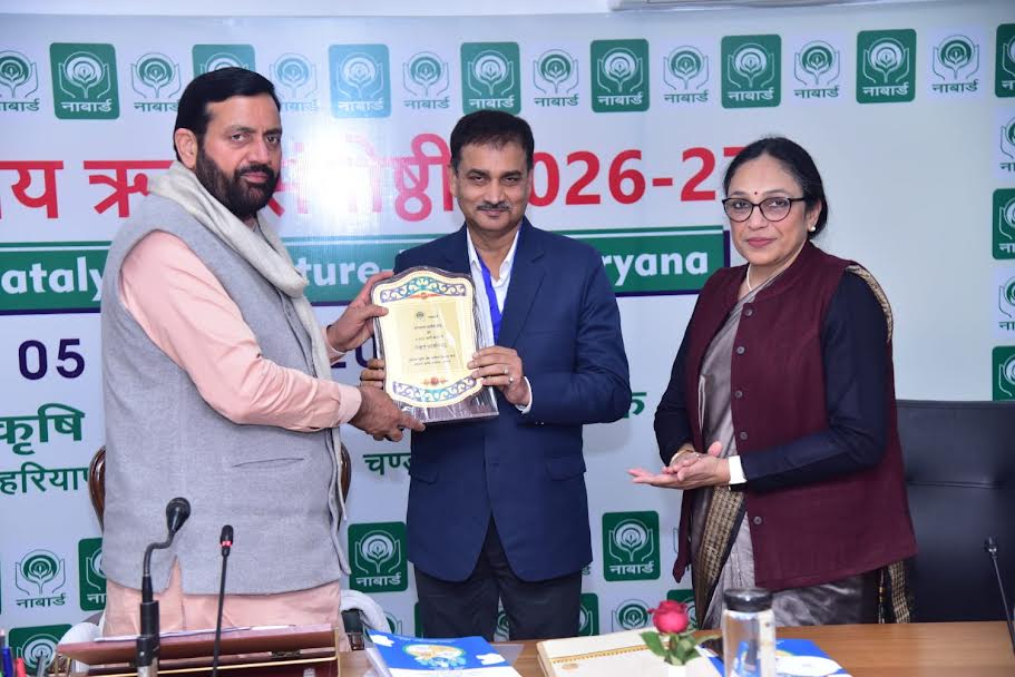 फरीदाबाद। नाबार्ड द्वारा आयोजित राज्य ऋण संगोष्ठी में डिजिटल केसीसी ऋण – उत्कृष्ट प्रदर्शन करने पर हरियाणा के मुख्यमंत्री द्वारा हरियाणा ग्रामीण बैंक को प्रदान किया गया। यह पुरस्कार बैंक की ओर से महाप्रबंधक एम. के. झा द्वारा प्राप्त किया गया। श्री झा ने पुरस्कार देने पर मुख्यमंत्री का आभार जताया और विश्वास दिलाया कि बैंक अपने दायित्व का भविष्य में इसी तरह निर्वहन करता रहेगा। गौरतलब है कि यह गौरवपूर्ण उपलब्धि ग्रामीण विकास, कृषक कल्याण, वित्तीय समावेशन एवं डिजिटल बैंकिंग के प्रति एचजीबी की सशक्त प्रतिबद्धता को दर्शाती है। इस उल्लेखनीय सम्मान पर महाप्रबंधक श्री झा ने सम्पूर्ण एचजीबी परिवार को हार्दिक शुभकामनाएं दी है।