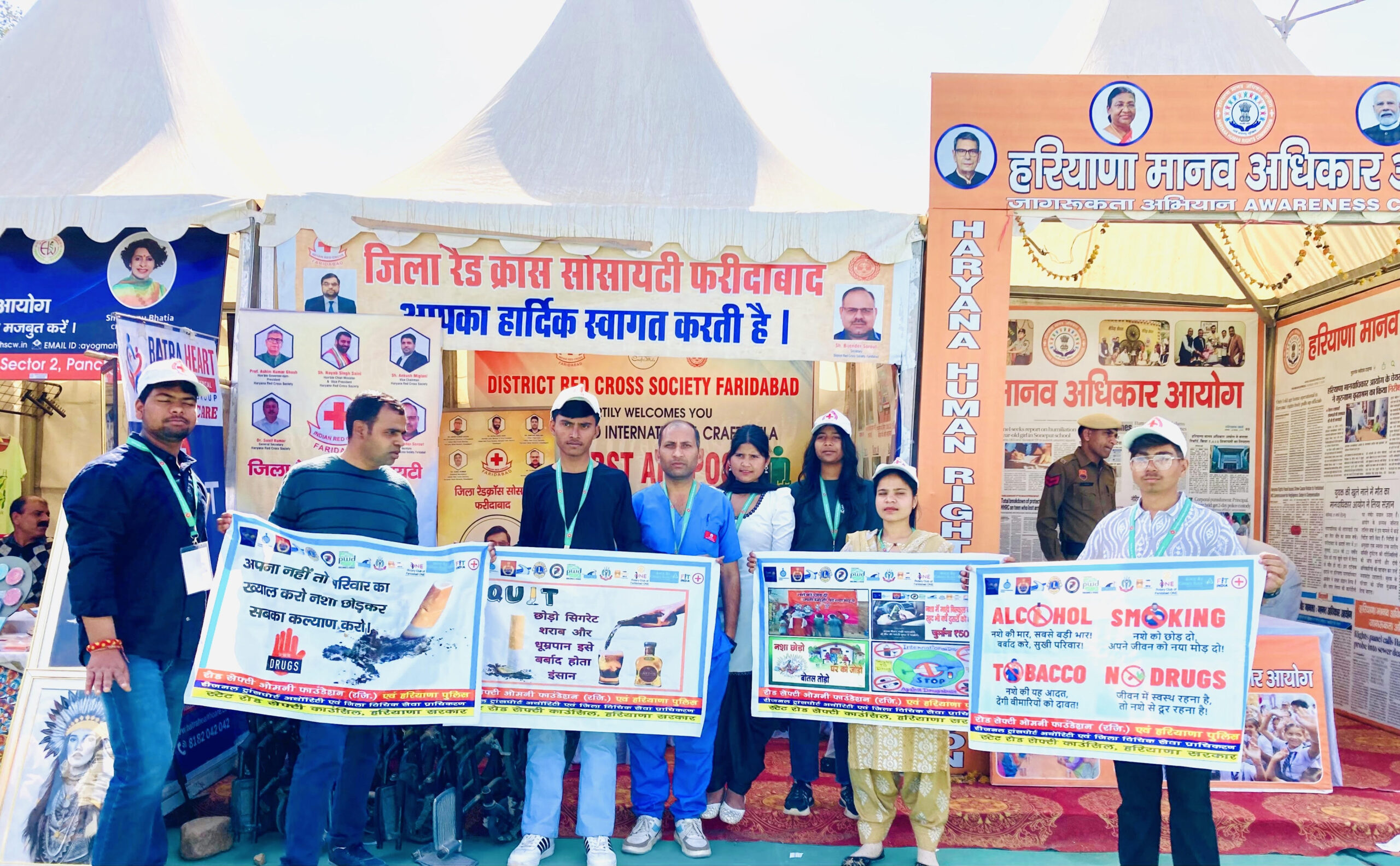 फरीदाबाद । जिला फ़रीदाबाद उपायुक्त आयुष सिन्हा आईएएस अध्यक्ष ज़िला रेडक्रॉस सोसायटी फ़रीदाबाद के आदेशनुसार एवं बिजेंद्र सौरोत सेक्रेटरी रेड क्रॉस सोसायटी फरीदाबाद के सहयोग एवं स्टेट रोड सेफ्टी काउंसिल हरियाणा सरकार के सदस्य सरदार देवेंद्र सिंह के मार्गदर्शन में आज 39वें सूरजकुण्ड अंतर्राष्ट्रीय क्राफ्ट मेले में रोड सेफ्टी ओमनी फाउंडेशन की टीम ने लोगों को नशें मुक्ति अभियान के प्रति जागरूक करा ।