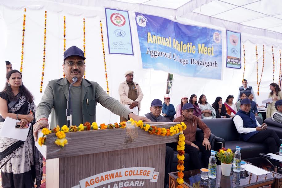 फरीदाबाद। विद्यार्थियों में खेलकूद की क्षमता को बढ़ाने एवं अन्य विद्यार्थियों को प्रोत्साहित करने के उद्देश्य से किया गया। देवेंद्र कुमार गुप्ता (अध्यक्ष, अग्रवाल कॉलेज गवर्निंग बॉडी) एवं दिनेश कुमार गुप्ता (महासचिव, अग्रवाल कॉलेज गवर्निंग बॉडी) की सदप्रेरणा से प्रत्येक वर्ष एथलेटिक मीट का आयोजन किया जाता है, जिसमें वार्षिक उपलब्धियों को सांझा भी किया जाता है। द्वितीय दिवस समापन सत्र में मुख्य अतिथि राजेश कुमार (जॉइंट कमिश्नर, फरीदाबाद) एवं विशिष्ट अतिथि के रूप में देवेंद्र कुमार गुप्ता (अग्रवाल कॉलेज गवर्निंग बॉडी के अध्यक्ष) रहे। खेल प्रतियोगिता का शुभारंभ दीप प्रज्ज्वल एवं ध्वजारोहण की पावन परंपरा के साथ किया गया।