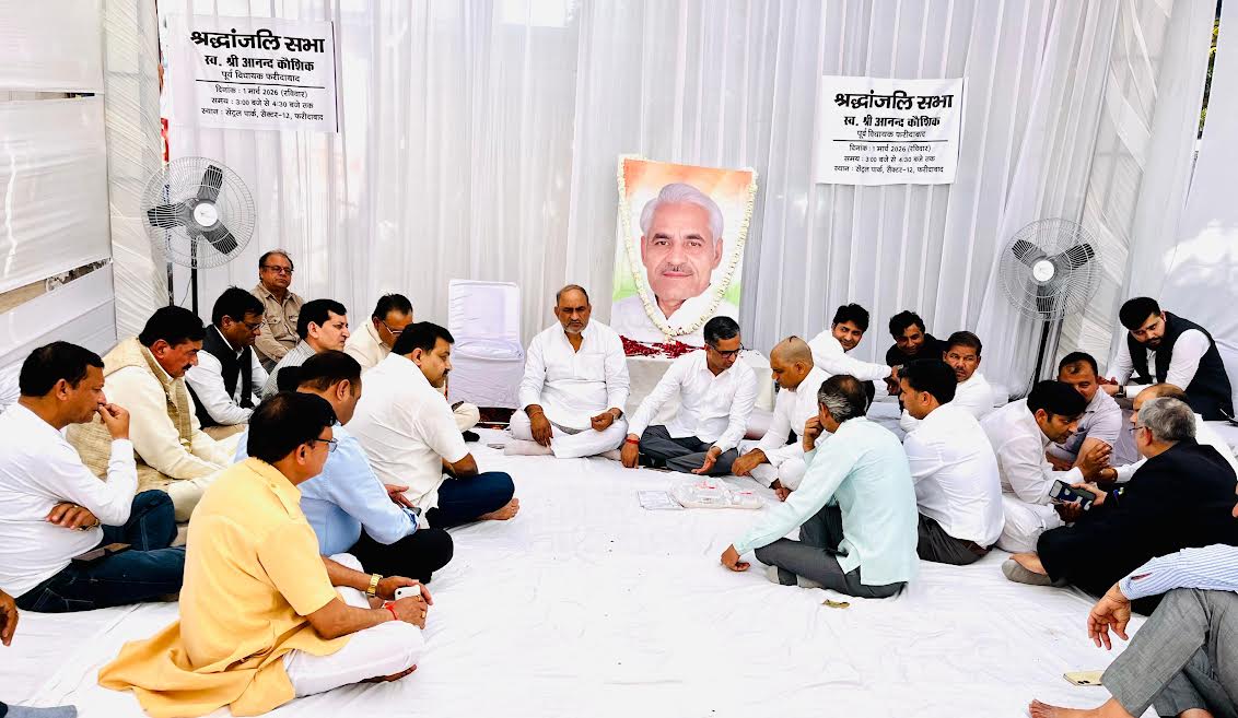 फरीदाबाद। जिला कांग्रेस कमेटी के अध्यक्ष बलजीत कौशिक के भाई फरीदाबाद के पूर्व विधायक आनंद कौशिक के निधन पर आज उनके निवास स्थान पर पहुंचकर बल्लभगढ़ की पुर्व विधायक व पूर्व संसदीय सचिव शारदा राठौर  केंद्र राज्य मंत्री चौधरी कृष्णपाल गुर्जर के पुत्र नगर निगम के पूर्व वरिष्ठ डिप्टी मेयर  देवेंद्र चौधरी ने आनंद कौशिक के चित्र पर पुष्प अर्पित करके श्रद्धांजलि दी  पूर्व संसदीय सचिव शारदा राठौर ने कहा कि आनंद कौशिक जी कांग्रेस पार्टी के वरिष्ठ नेता थे उन्होंने हमेशा दलगत राजनीति से ऊपर उठकर 36 बिरादरियों के लिए काम किया  इसी कारण आज राजनीतिक दलों के नेता सामाजिक संगठनों के प्रतिनिधि  उनको श्रद्धांजलि दे रहे हैं उन्होंने कहा कि आनंद कौशिक और हमारे बीच में एक पारिवारिक रिश्ता था नगर निगम के वरिष्ठ डिप्टी मेयर देवेंद्र चौधरी ने कहा कि राजनीतिक मतभेदों के बावजूद भी हमारा व्यक्तिगत पारिवारिक के साथ-साथ सामाजिक भी रिश्ता रहा है आज उनकी कमी से राजनीतिक शून्य हो गई है इसकी भरपाई कभी भी नहीं की जा सकती देवेंद्र चौधरी ने कहा कि विधायक रहते हुए