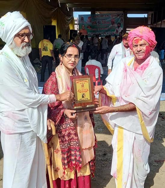 फरीदाबाद। यमुना रक्षक दल एवं ब्रज गोपी दल के संयुक्त तत्वावधान में ब्रह्माजी जी की नगरी चौमुहाँ-श्री वृन्दावन धाम में आयोजित ब्रज होली महोत्सव के पावन अवसर फरीदाबाद की स्वर लत्ता सिंह को अन्तर्राष्ट्रीय कथा-वाचक श्री राधे राधे बाबूजी तथा यमुना रक्षक दल के राष्ट्रीय अध्यक्ष परम संत जय कृष्ण दास महाराज ने ‘ब्रज गोपी सम्मान’ से अलंकृत किए। स्वर लत्ता सिंह को यह सम्मान उनके द्वारा ब्रज ध्वजवाहक के रूप में ब्रज संस्कृति को पल्लवित, पुष्पित तथा फलीभूत करने हेतु सार्थक व समर्पित सेवाओं के लिए प्रदान किया गया।
